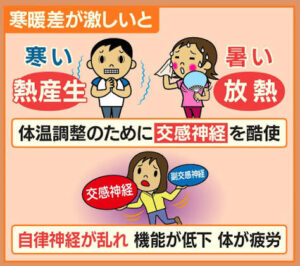 実はこれ、「寒暖差」と「自律神経の乱れ」が関係していることが多いんです。